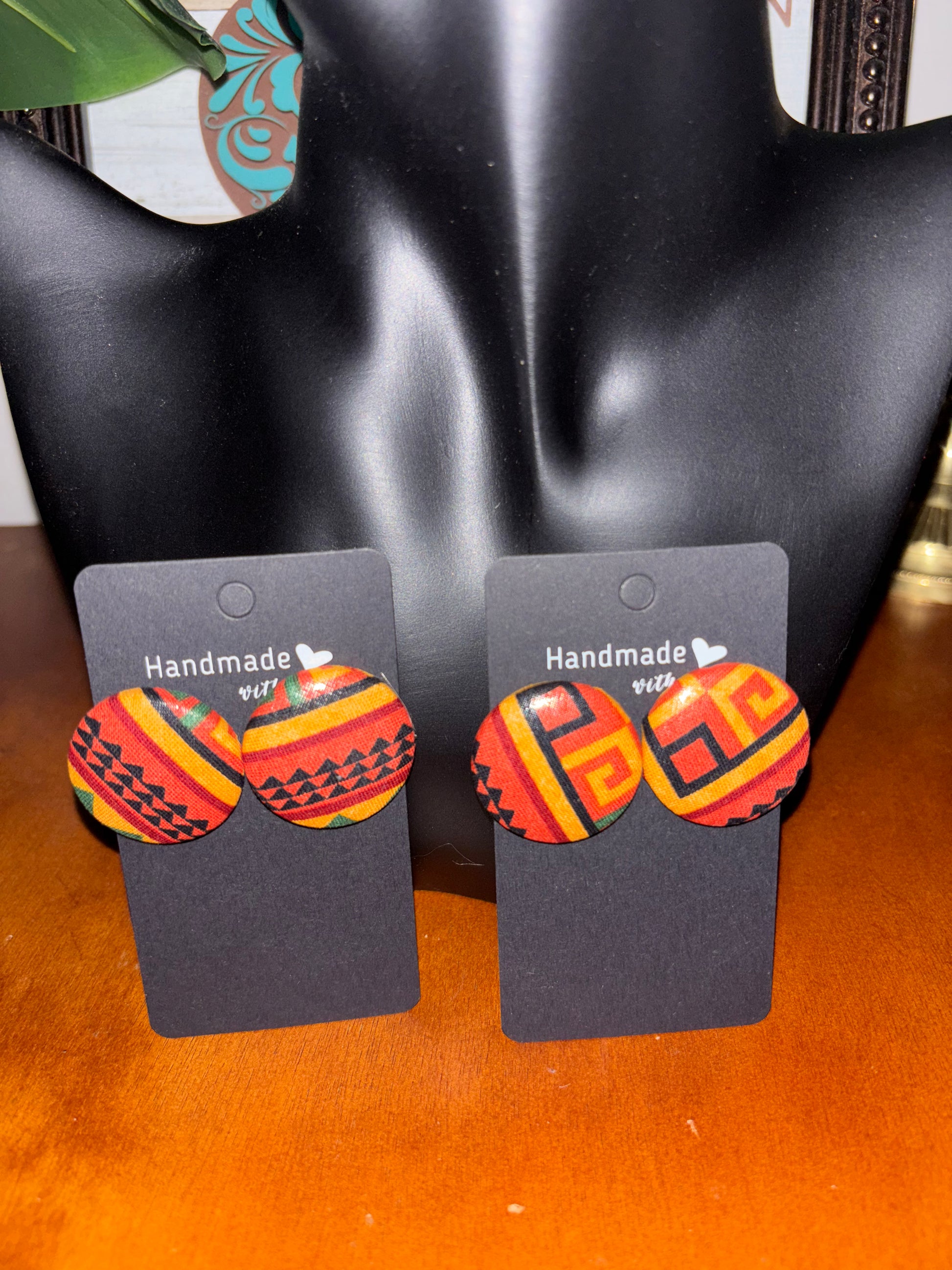AfriGlam Earrings is made with a patterned fabric and button. They are cute for any occasion.