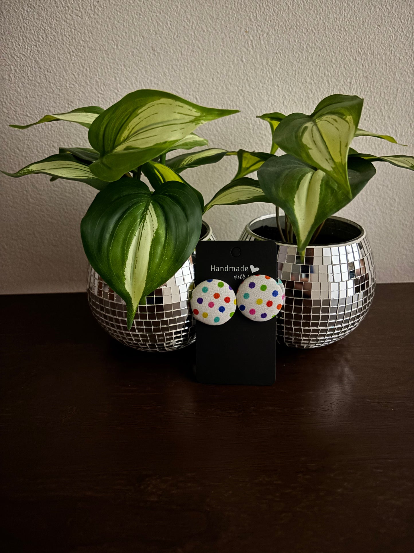 Dotty is made with a pattern material and button earrings. They are cute for any occasion.
