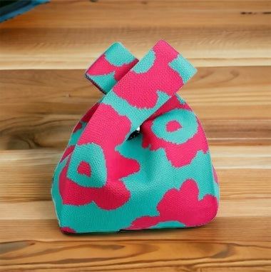 This bold and modern touch Flower pattern handbag adds a lively and artistic flair square shape for a fashion forward and attention grabbing silhouette. The loop handles are designed for convenient and stylish wristlet wear. Can be carried as a small tote bag for flexible and chic styling. Made of 100% double knit polyester.