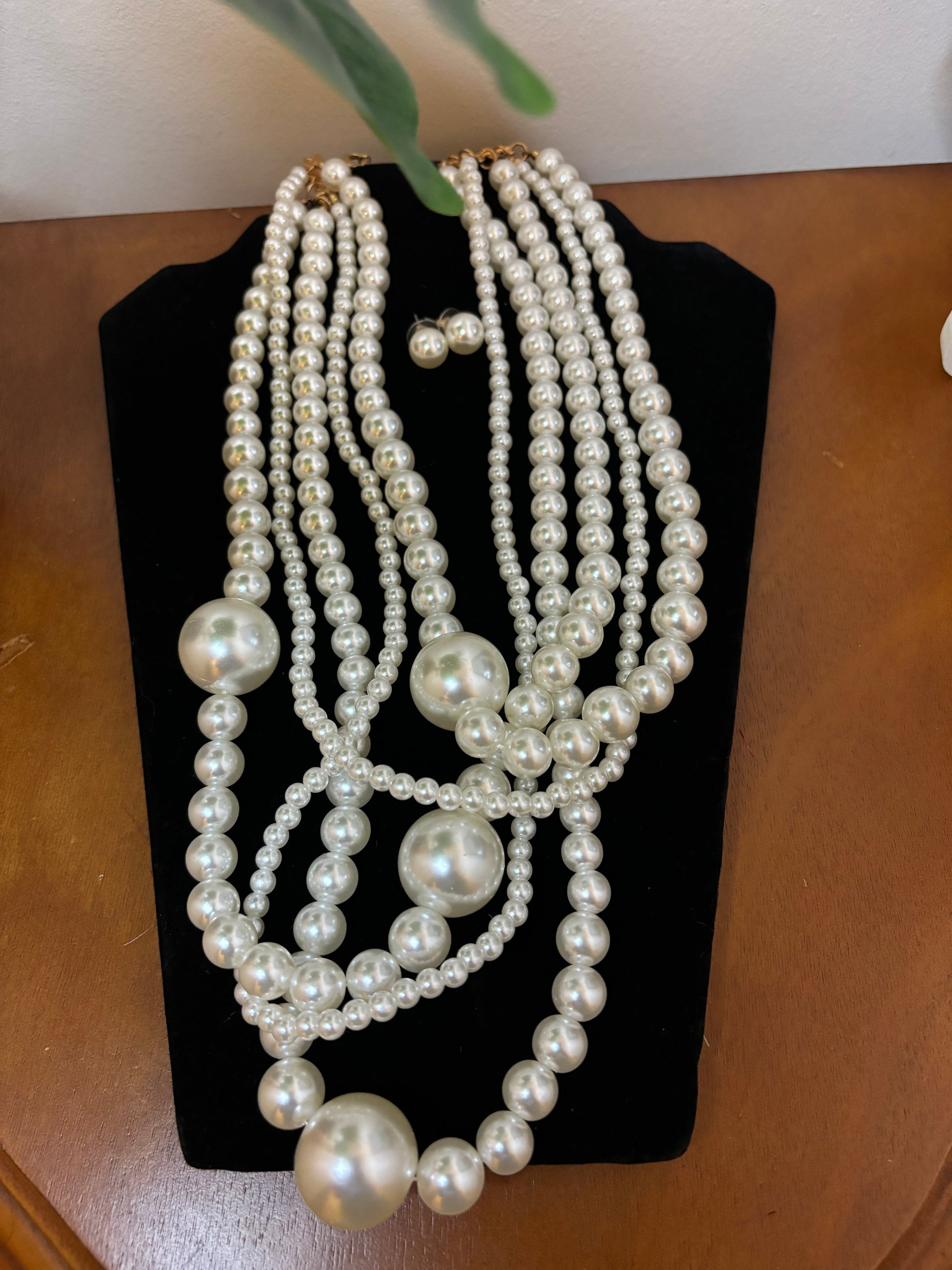 Elevate your style with our Ivory Pearl Necklace Set. This necklace set add a touch of elegance to any outfit.