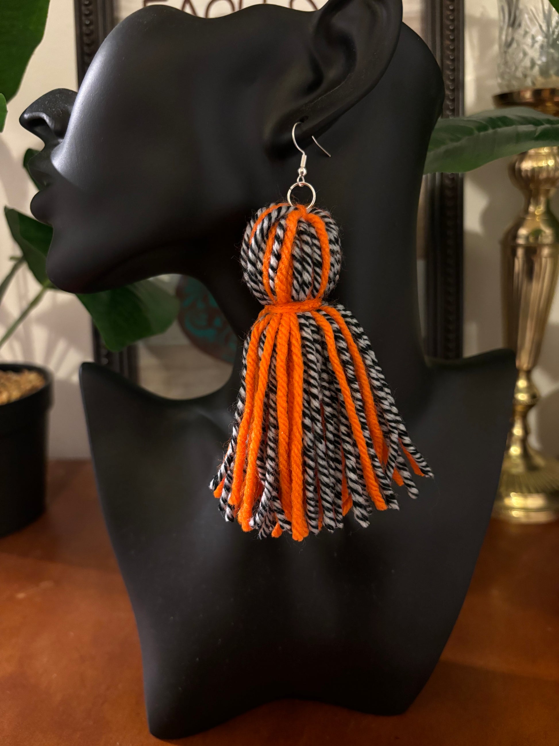 Handmade tassel yarn earrings that are lead and nickel free. Can be worn with any styled outfit.